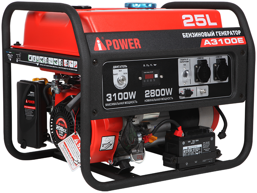 Бензиновый генератор A-iPower A3100Е станет Вашим надежным источником питания при отсутствии электроэнергии. Этот генератор с максимальной мощностью 3100 Вт и номинальной мощностью 2800 Вт работает до 14 часов при 100% нагрузке!
